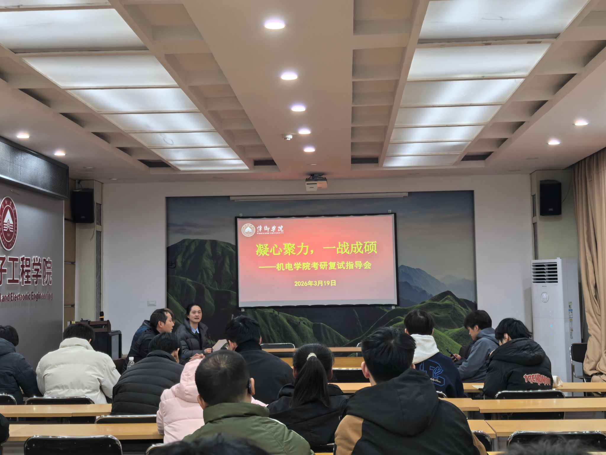 为帮助考研学子精准把握复试要点、提升应试能力、全力冲刺理想院校,3月19日晚7点,机械电子工程学院以“凝心聚力,一战成硕”为主题,召开考研复试指导工作会。会议由毕业班辅导员杨芳老师主持,学院领导、专业教师及备战考研复试的同学共同参会。