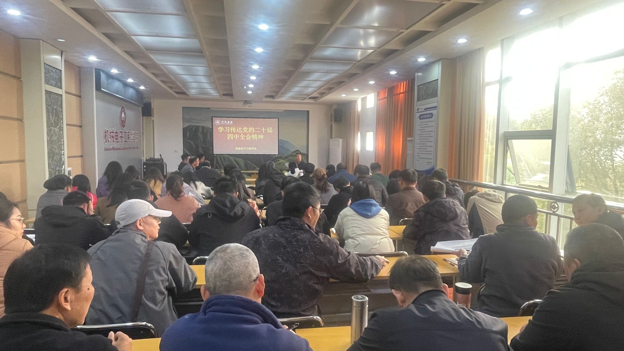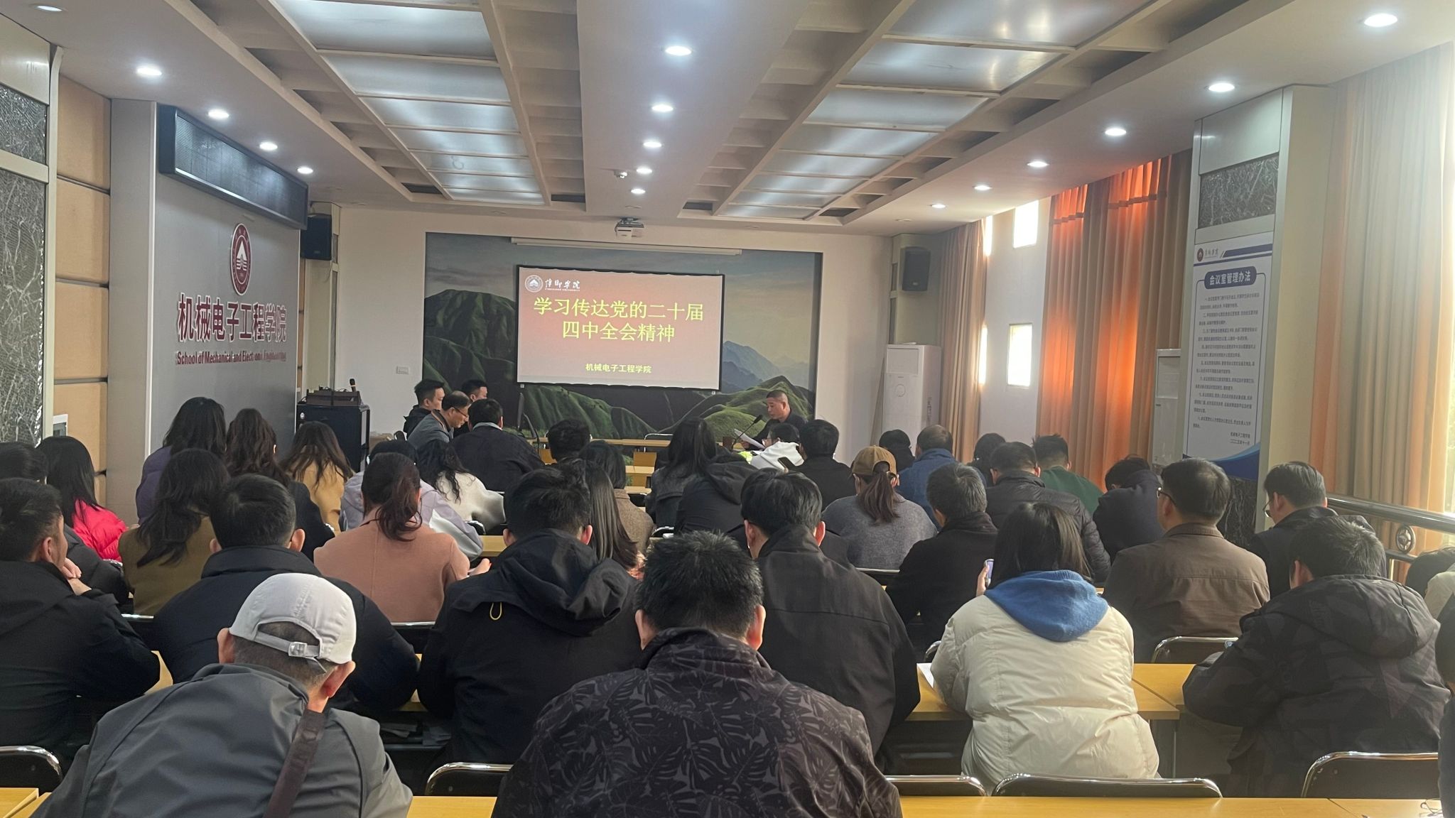 为深入学习宣传贯彻党的二十届四中全会精神,进一步凝聚共识、明确方向,切实把思想和行动统一到党中央决策部署上来,汇聚形成推动学校“十五五”时期高质量发展的强大动力,11月6日下午,机械电子工程学院在鼎新楼2200会议室召开党的二十届四中全会精神宣讲报告会。学院党委书记王斌主讲,学院全体教师及学生代表到现场聆听。