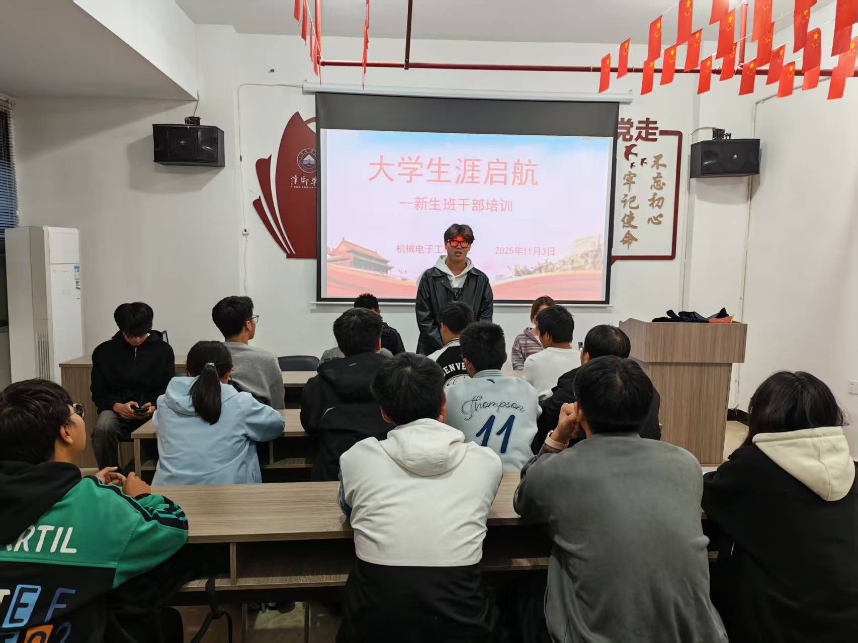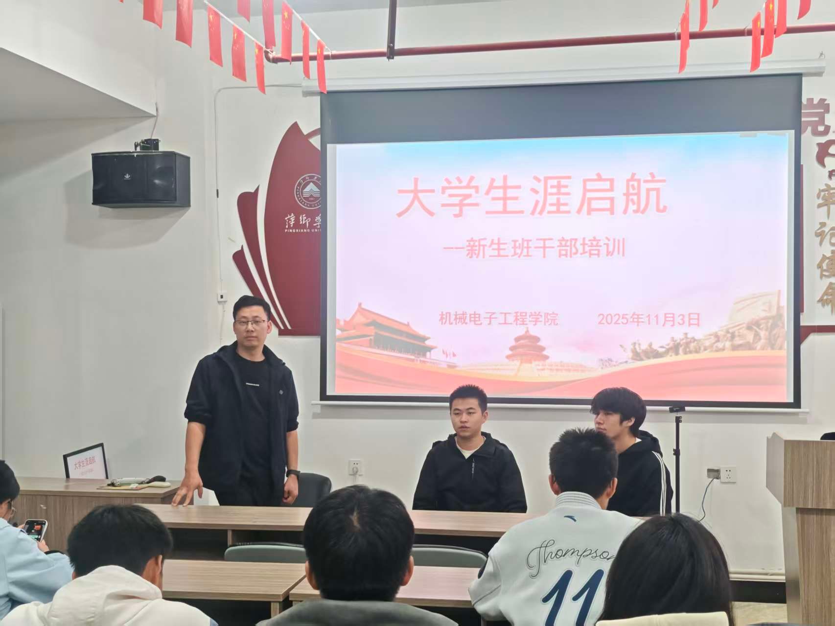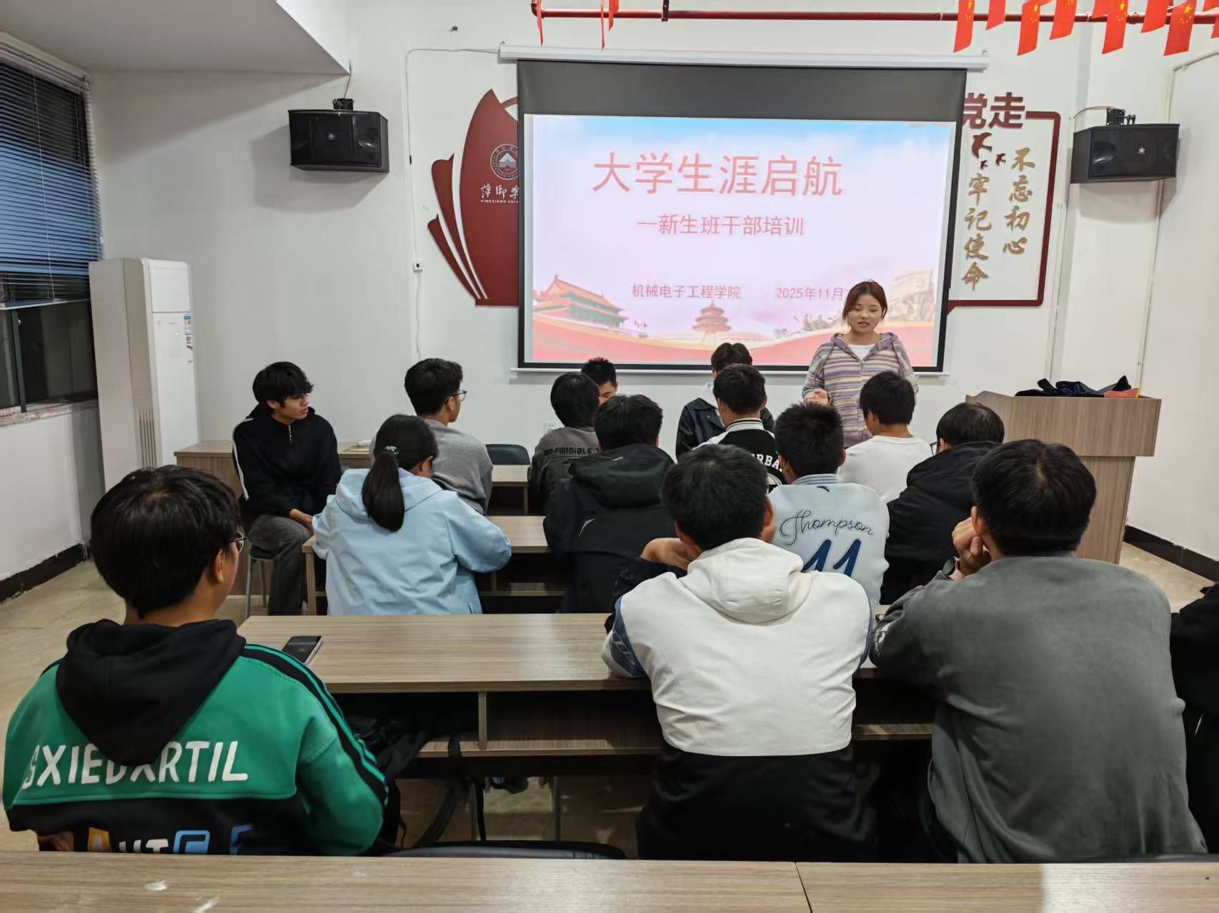 为加强2025级新生学生干部队伍建设,提升其综合素养与履职能力,明确责任与使命,机械电子工程学院于11月3日在18栋“红管家”一站式学生社区开展了“大学生涯启航”2025级新生班干部培训会。本次培训会由张陆老师主讲。