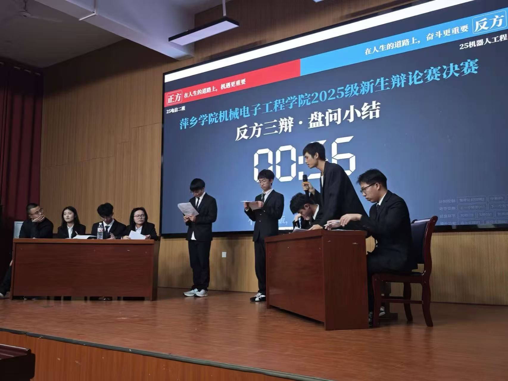 方寸辩台,思想交锋;机电学子,锋芒尽显。为锤炼新生的思辨能力、提升语言表达素养,培育团队协作精神、丰富校园文化生活,12月3日晚,机械电子工程学院2025级新生辩论赛决赛在跬步楼精彩上演。